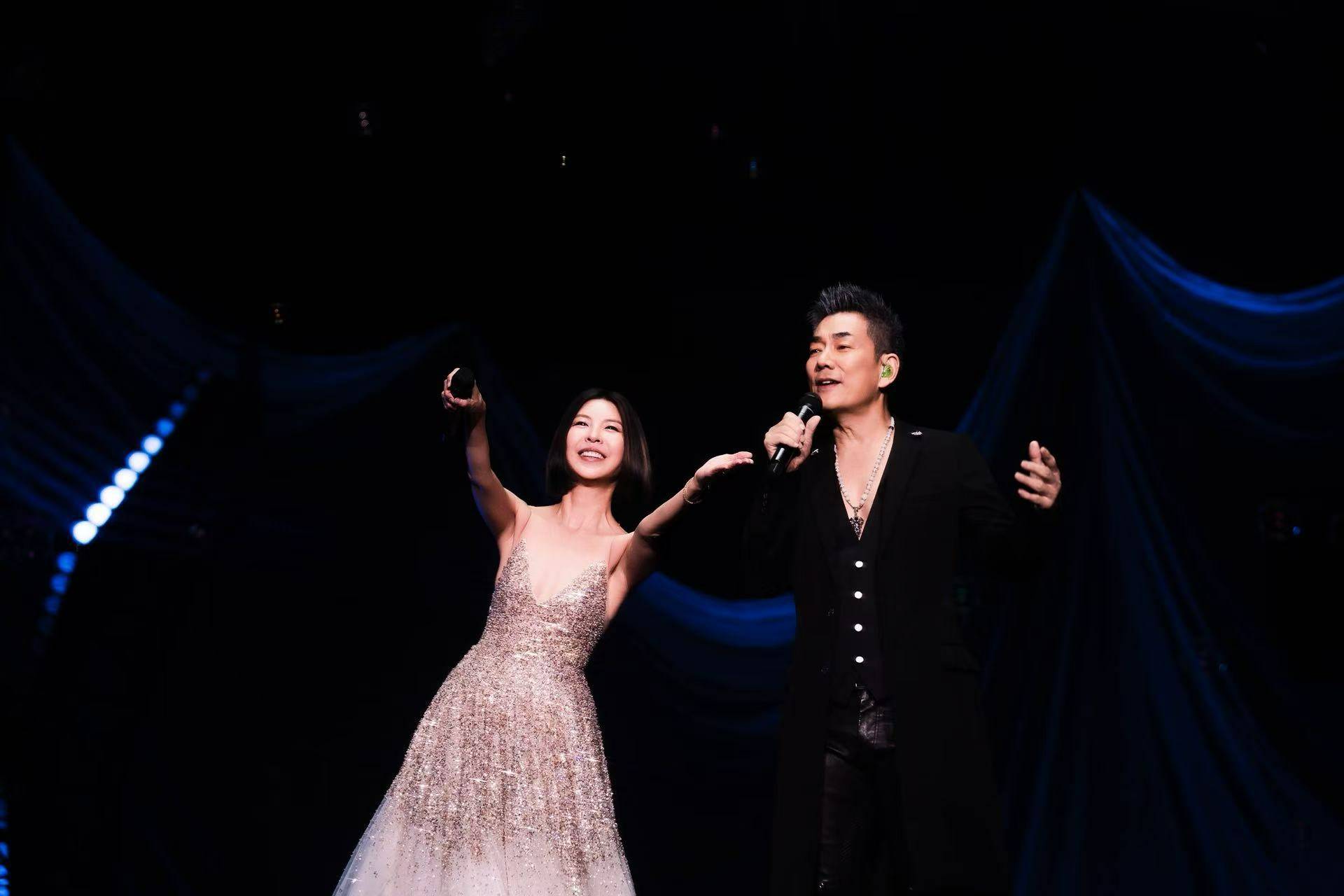整场演出最大的惊喜则是惊喜嘉宾任贤齐的现场助阵。两位好友同台,瞬间点燃了全场热情。他们亲切互动,许茹芸笑称在这个“适合相爱的时辰”,一定要请来一位最懂浪漫的朋友。随后,两人携手带来了华语乐坛的经典情歌《我是一只鱼》。前奏响起,全场立刻变成万人KTV现场,与台上歌手齐声合唱。许茹芸更在现场动情回忆,30年前出道时自己的首个通告的主持人就是任贤齐,他对新人时期的自己格外照顾,可以说是自己演艺生涯的一位“贵人”。而这样动人的背后的故事,也为这首经久不衰的华语经典的合唱,赋予了新的生命力,堪称当晚最动人的时刻之一。
